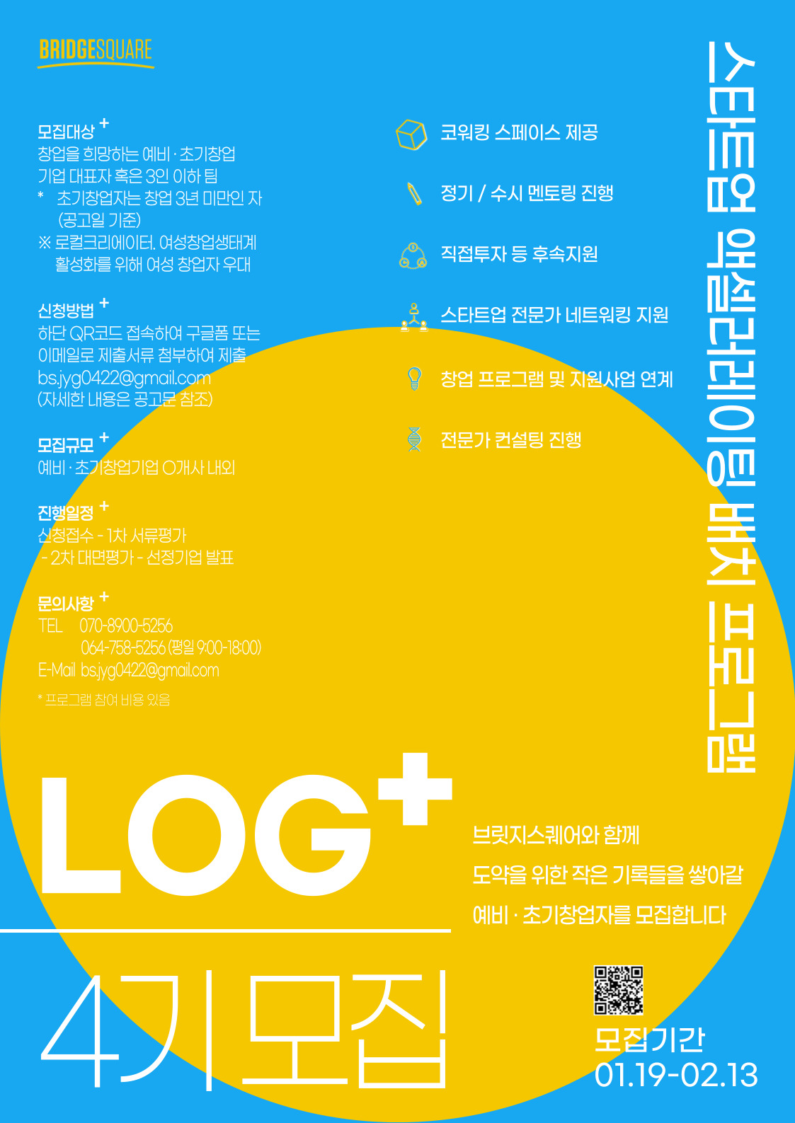 (공고)2022 브릿지스퀘어 스타트업 액셀러레이팅 배치 프로그램 LOG+ 4기 모집 공고
